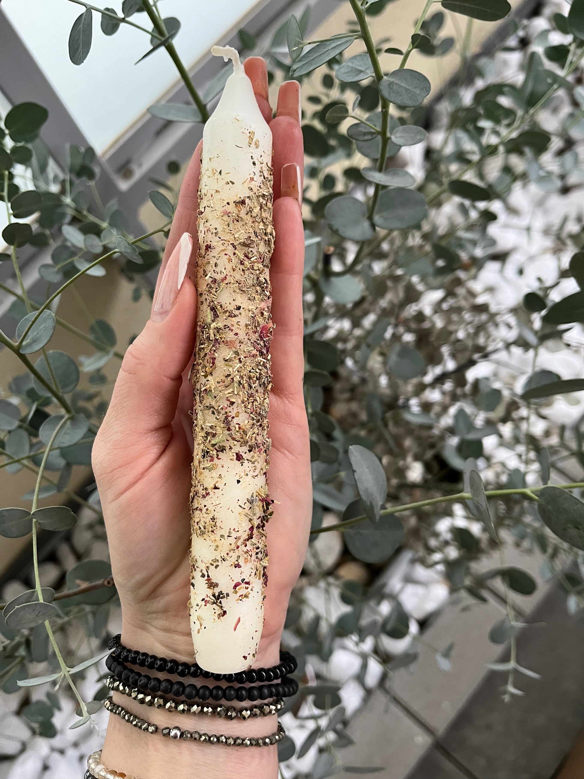 Diese Ritualkerze eignet sich ideal für Neujahrsrituale, Übergangsrituale, Manifestationsarbeit und energetische Neuausrichtung.